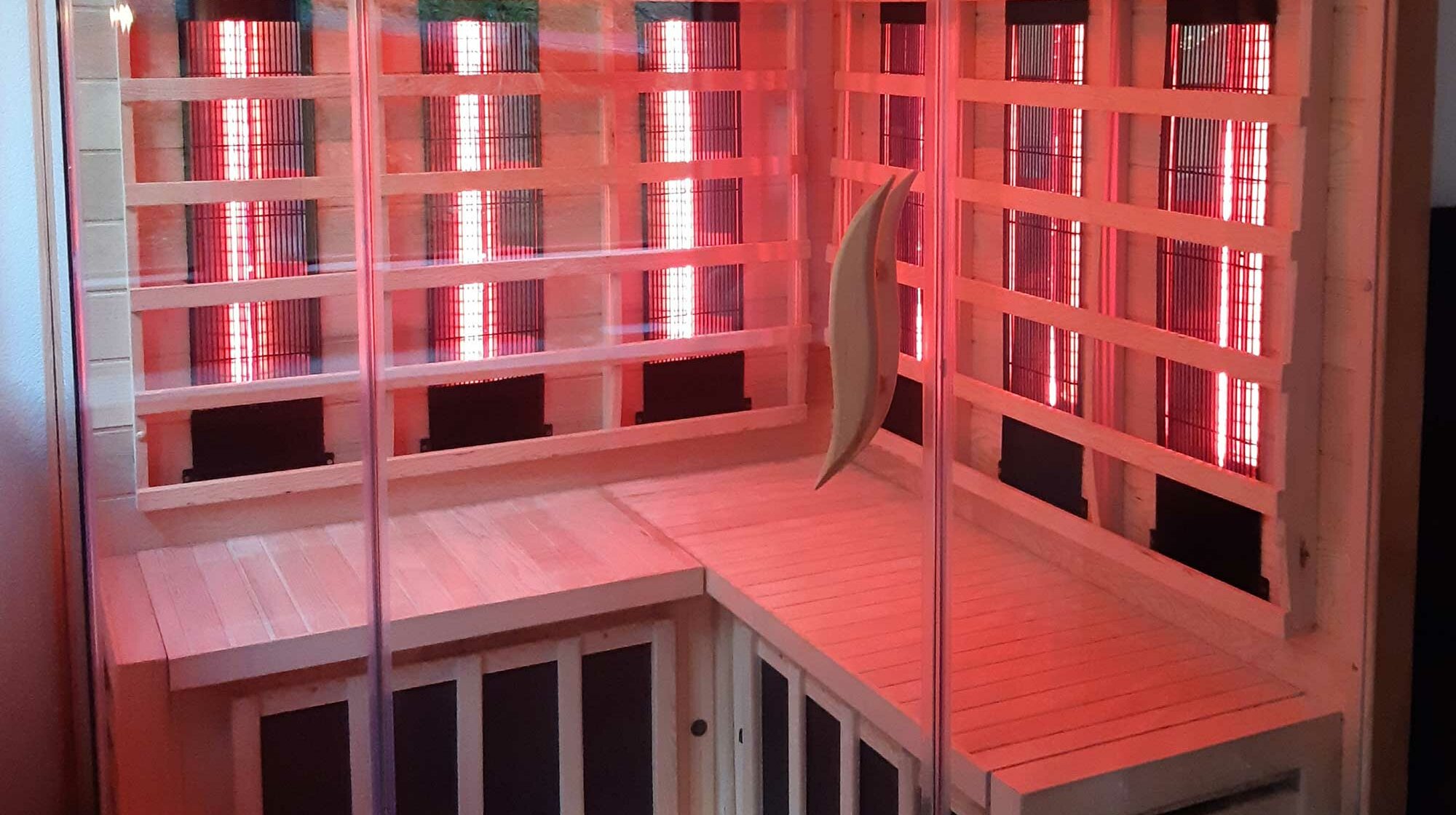- Infrarotsaune, finnisches Saunafass & kleiner Fitnessraum